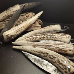 Le Bélier a vu le jour en 2022. je voulais un couteau simple avec les matériaux les plus nobles qui étaient le plus proches de mon atelier. Le bois de cerf fut rapidement le meilleur choix, ce mammifère étant très présent dans mon secteur, il me restait plus qu'à réfléchir à un petit couteau avec cette matière de qualité. Mon approvisionnement ce fait par prélèvement et surtout par ramassage de bois de mue. Je suis parti sur un deux clous avec une lame forgée munie d'une volute qui donne la silhouette d'une tête de bélier une fois le couteau replié. La lame possède un tranchant de 7.5cm en moyenne, forgée en acier carbone pour un tranchant redoutable. Ce petit couteau, léger et qui ne prend pas de place, est un très bon compagnon pour les repas.